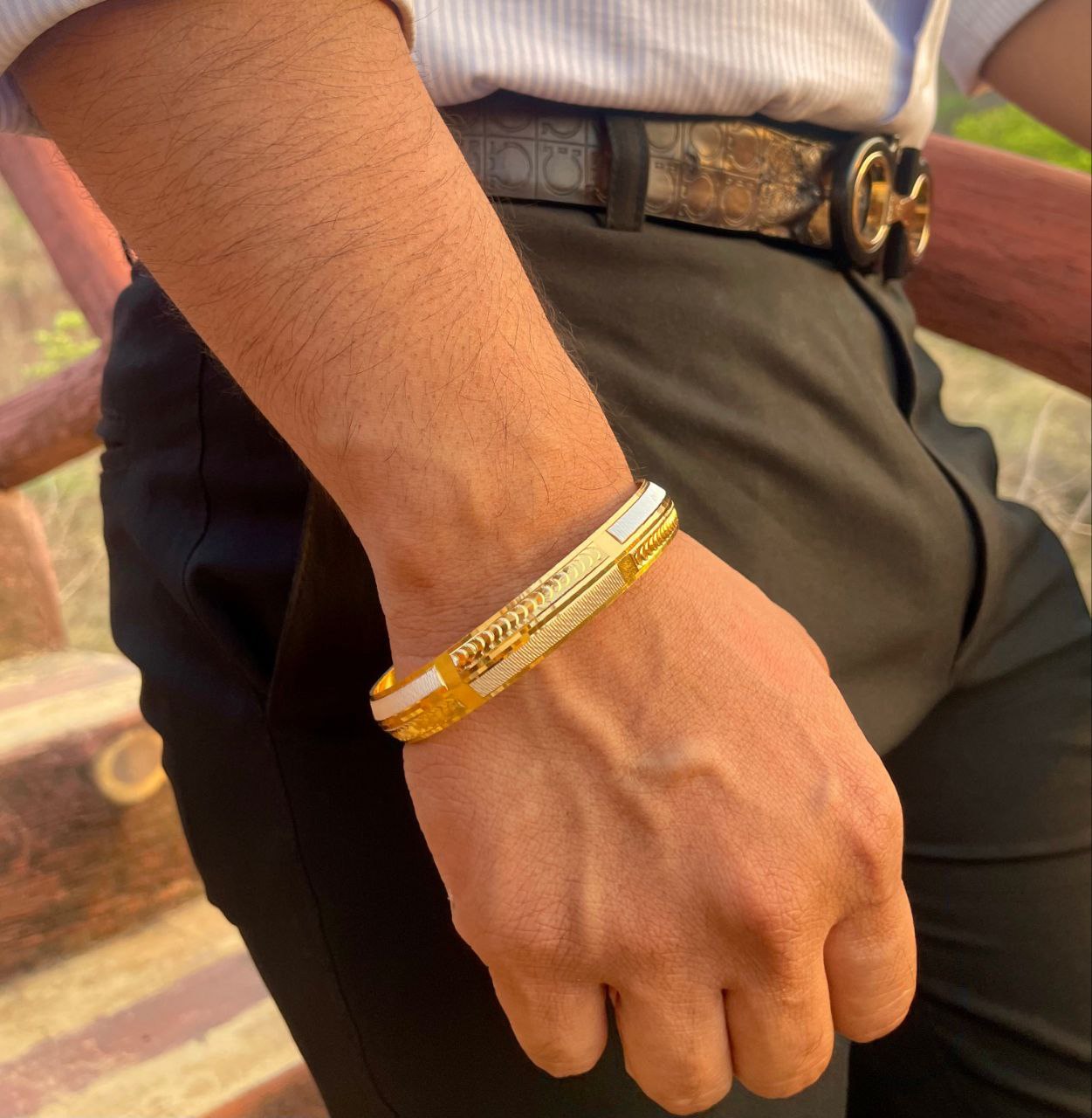 Step into a world where classic tradition blends effortlessly with modern masculinity. Introducing the Men's Dual Tone Kada, a statement piece crafted for the man who isn’t afraid to stand out. With its 22Kt gold plating and contrasting dual-tone design, this kada is more than just an accessory — it’s a declaration of strength, balance, and timeless style.